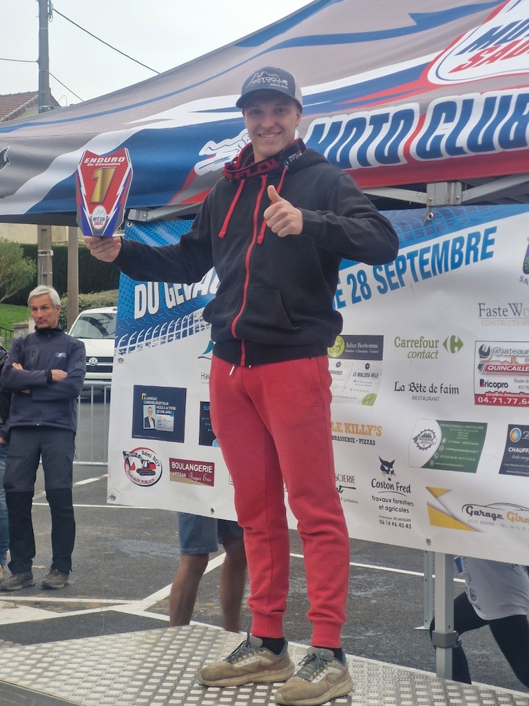 Gaël remporte la journée dans la catégorie ESPOIR après une grosse bagarre avec Ewen FORESTIER, lui aussi pilote du Moto Club du Livradois qui termine donc second.