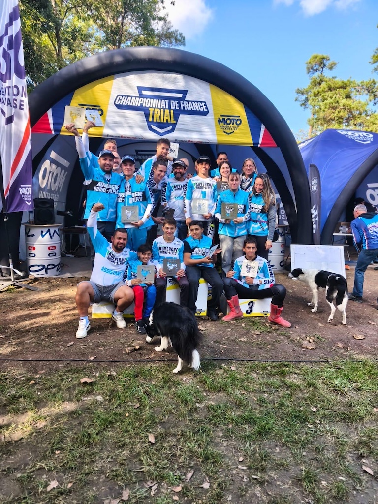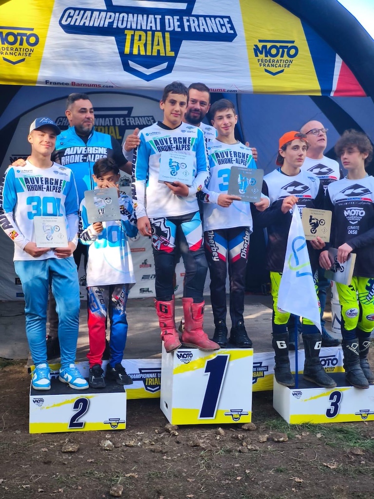Grosse domination des pilotes de la ligue AURA (Auvergne Rhône Alpes) ce dimanche 5 Octobre 2025 à Francueil où se disputait le traditionnel Trial Des Régions FFM. En effet c’est avec une belle moisson pour la ligue AURA, dont deux pilotes sont membres du Moto Club du Livradois, Jules et Matthieu POUGET, que s’est conclue cette édition 2025, empochant des victoires et des podiums dans toutes les catégories où les équipes étaient au départ.