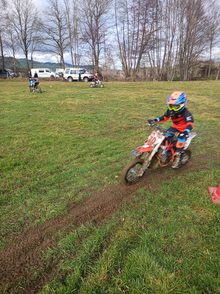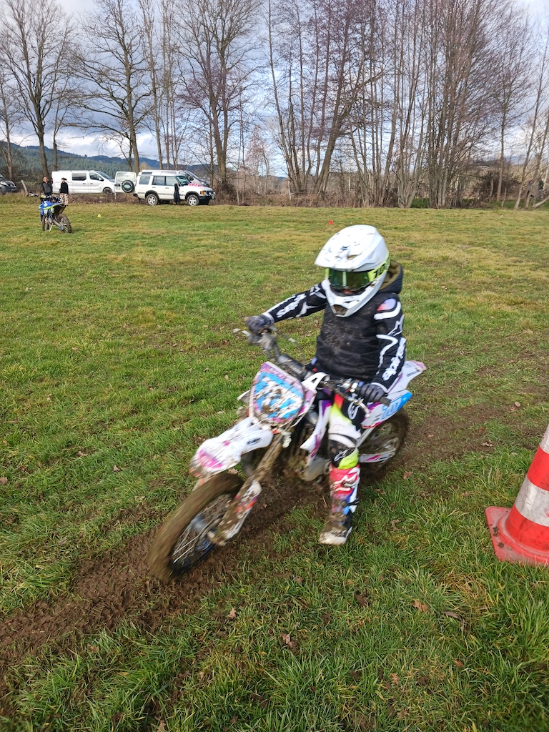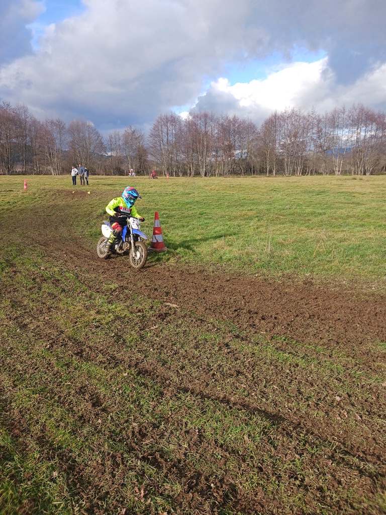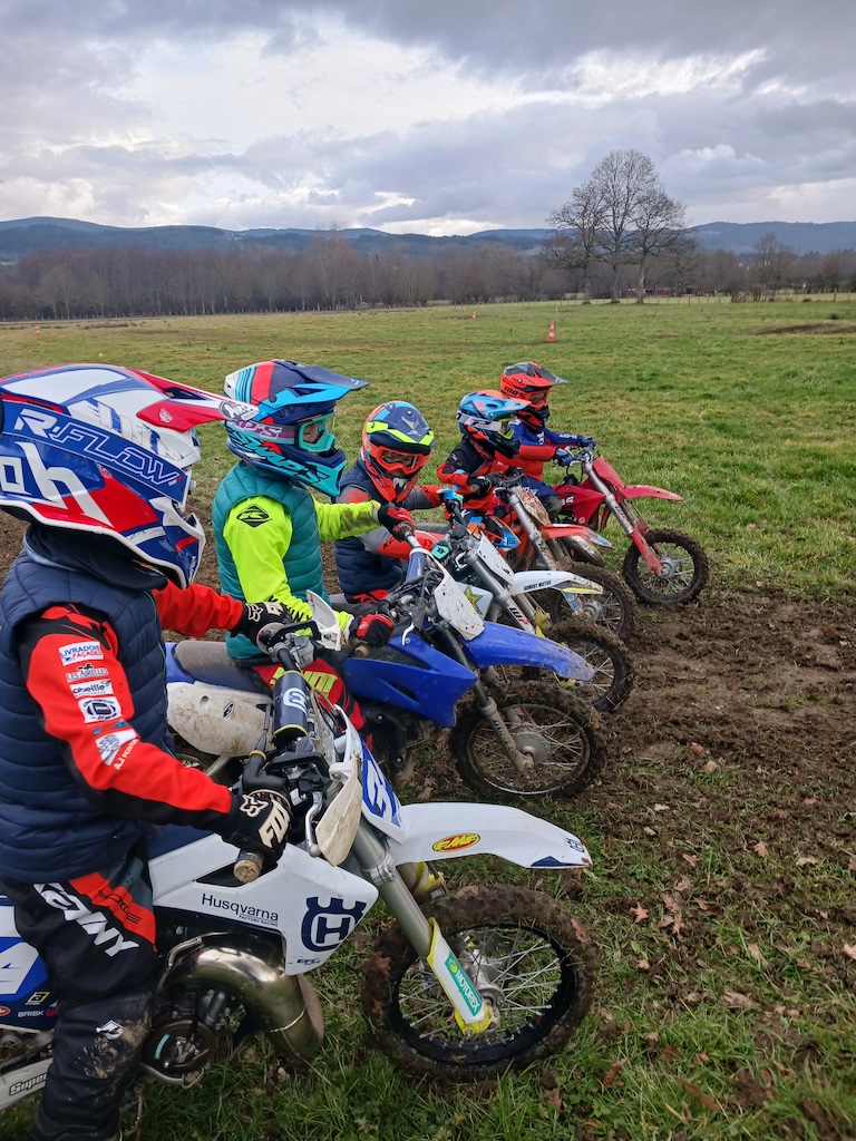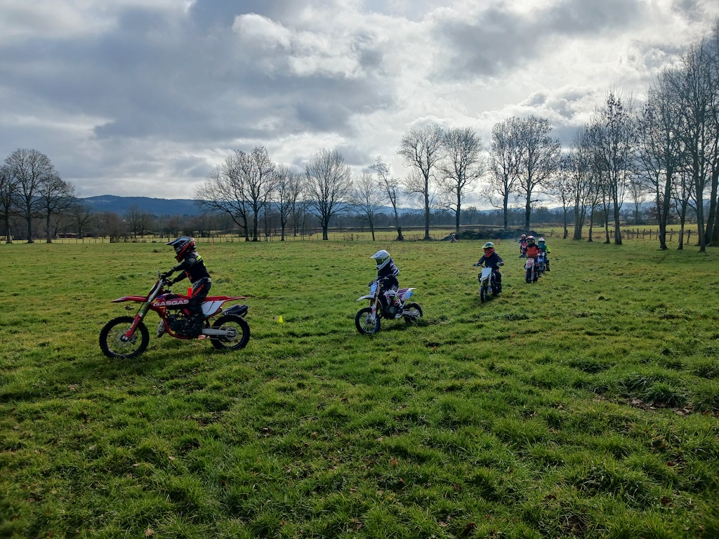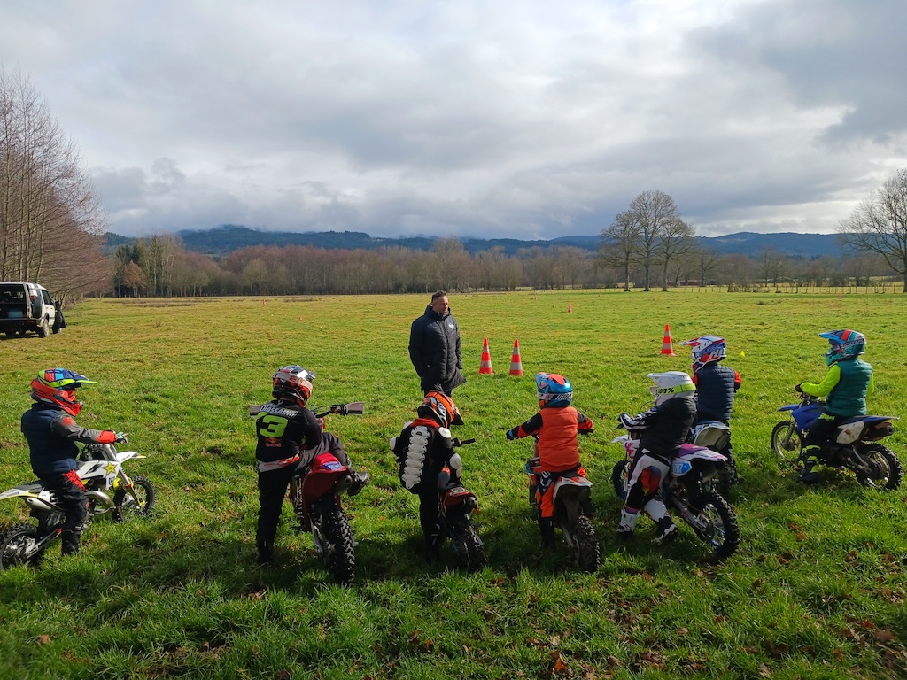Et c’est là que réside la grande nouveauté cette année, car avec les habituels adultes qui se pressent chaque année aux stages proposés par le Moto Club du Livradois, 2026 a donc vu la greffe d’un après-midi pour les plus jeunes et ce pour leur plus grand plaisir. Ainsi, Samedi, ce sont 8 enfants de 5 à 14 ans qui ont pu bénéficier des conseils de Julien sur un terrain plat et une météo agréable avec un petit goûter ![]()