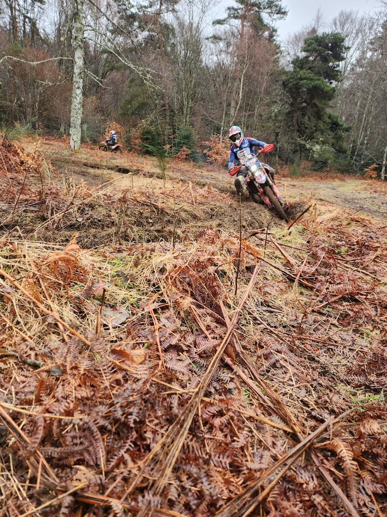 Quant aux adultes, ils se sont retrouvés le Dimanche. Ils étaient 10 ayant roulé malheureusement, par une journée pluvieuse, mais cependant enrichissante. Ils ont pu alterner des roulages sur une spéciale en herbe, et en sous bois avec des belles ornières, pour peaufiner leur technique.