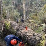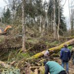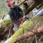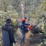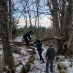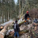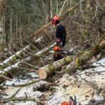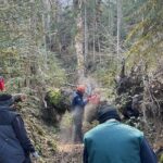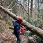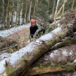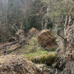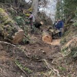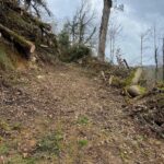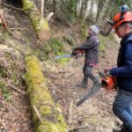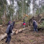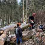 Deux équipes ont été constituées. L’une sur le secteur de Bertignat pour réouvrir le chemin entre Flouvat et le Bost. Ce dernier était complétement bouché suite à la tempête du 1er Juin 2025. Il a fallu déployer les gros moyens avec des engins forestiers et une pelleteuse afin de venir à bout des énormes arbres tombés en travers du sentier.