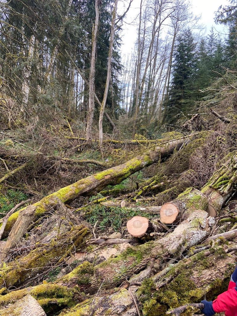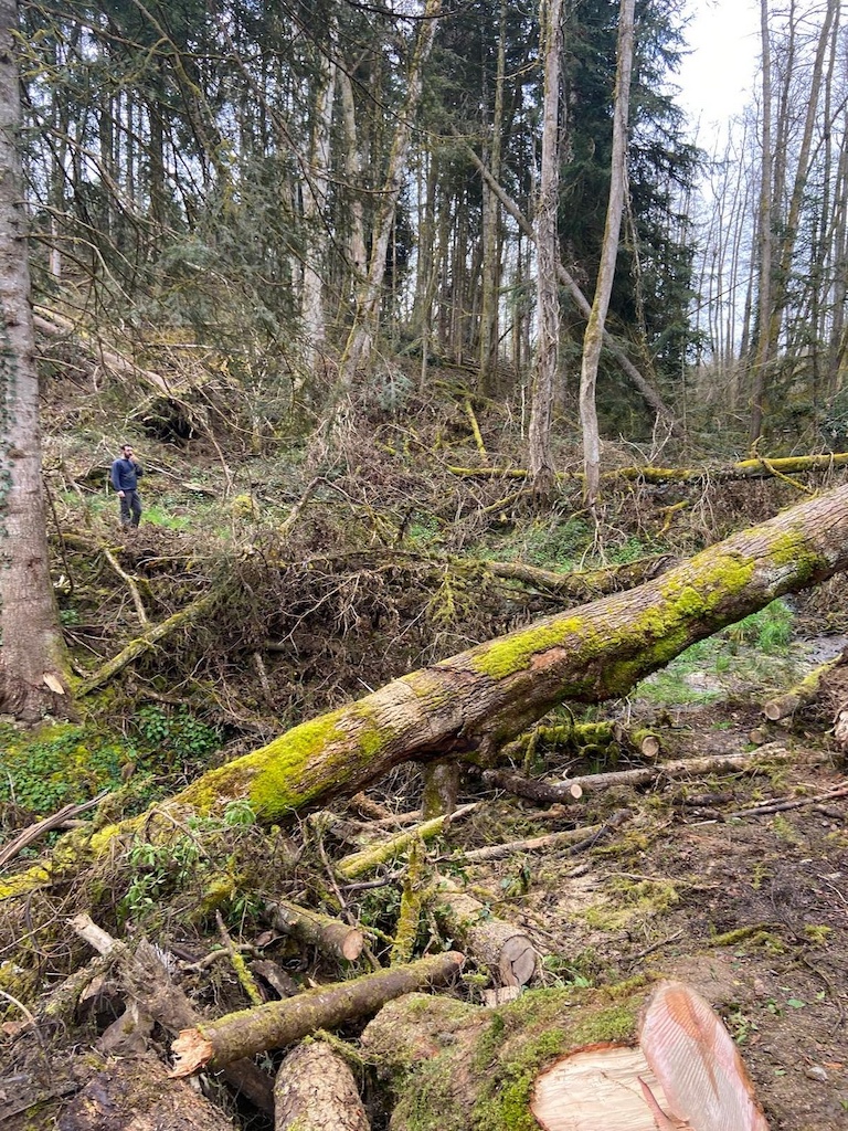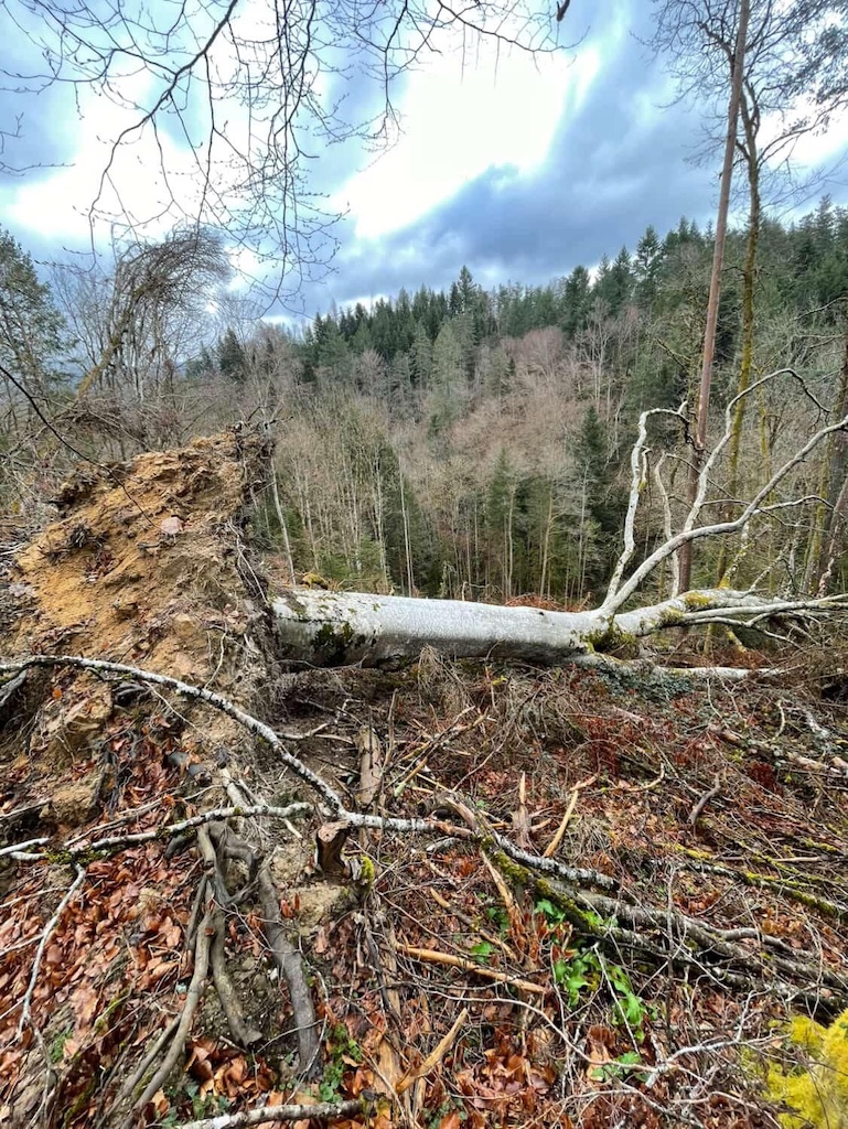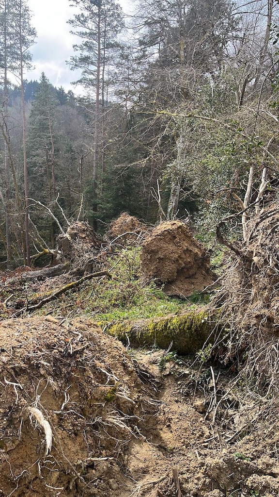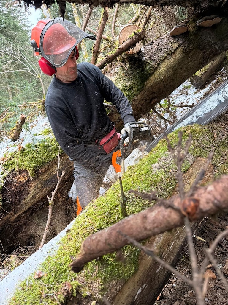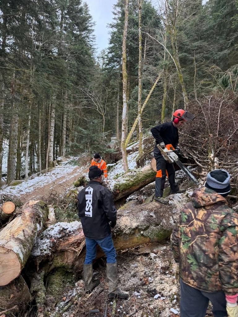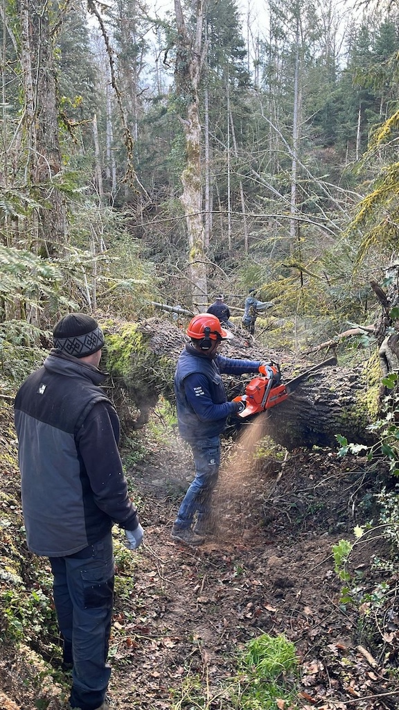 Deux équipes ont été constituées. L’une sur le secteur de Bertignat pour réouvrir le chemin entre Flouvat et le Bost. Ce dernier était complétement bouché suite à la tempête du 1er Juin 2025. Il a fallu déployer les gros moyens avec des engins forestiers et une pelleteuse afin de venir à bout des énormes arbres tombés en travers du sentier.