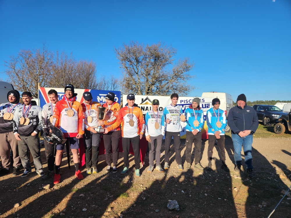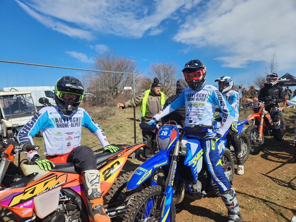 Quatre pilotes du Moto Club du Livradois, représentant le ligue Auvergne Rhône Alpes, sont montés sur les podiums de la Coupe de France d’endurance (enduro) 2026. Dans la catégorie TROPHÉE Cyril LAURENS et Julien PLANET ont terminé troisième, de même que Ewan FORESTIER CHIRON et Esteban ROBIN dans la catégorie JUNIOR. Bravo à nos pilotes !