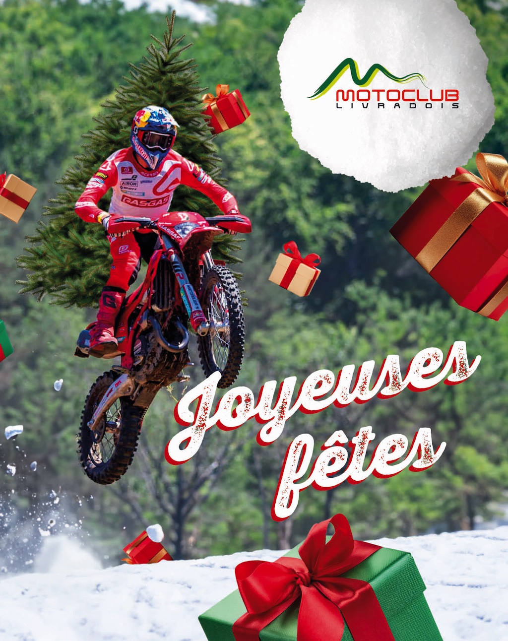 Les membres du Bureau du Moto Club du Livradois, souhaitent à tous ses adhérents, bénévoles, partenaires, sympathisants et au nombreux public venu sur ses organisations 2025, un joyeux Noël et plus largement de bonnes fêtes de fin d’année ! Nous vous donnons rendez-vous en 2026 avec un trial de ligue AURA à Marat le 21…